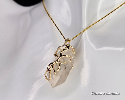 AA Grade Raw Herkimer Diamond Pendant – Handmade Natural Crystal Necklace with Adjustable 925 Sterling Silver